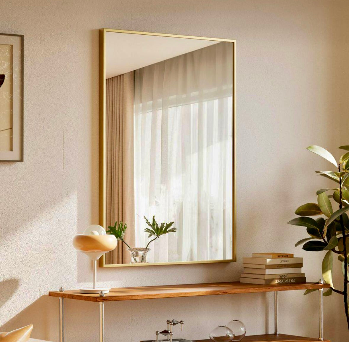 1 x Gold 20 in. W x 28 in. H Modern Rectangular Aluminum Framed Vanity mirror