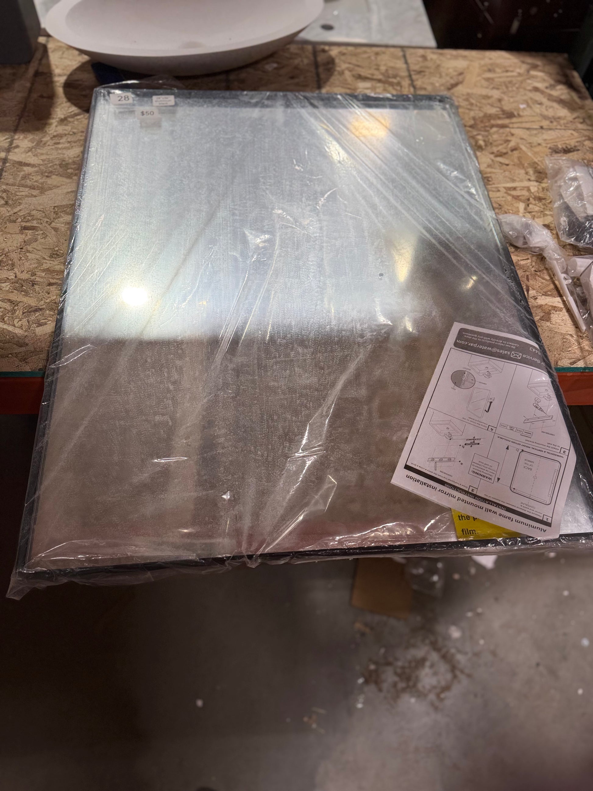 28 in W x 36 in H rectangular aluminum framed wall bathroom vanity mirror in black