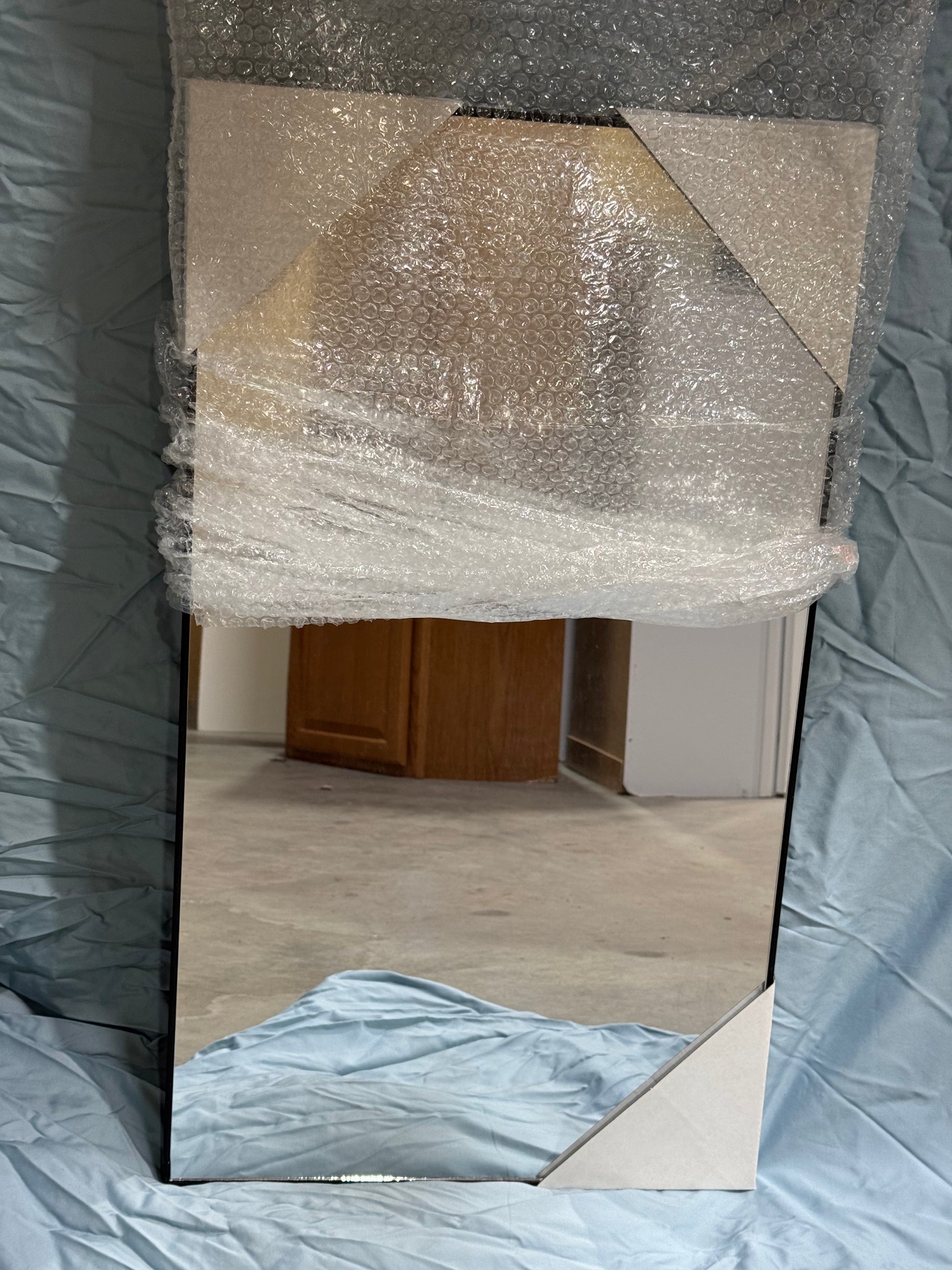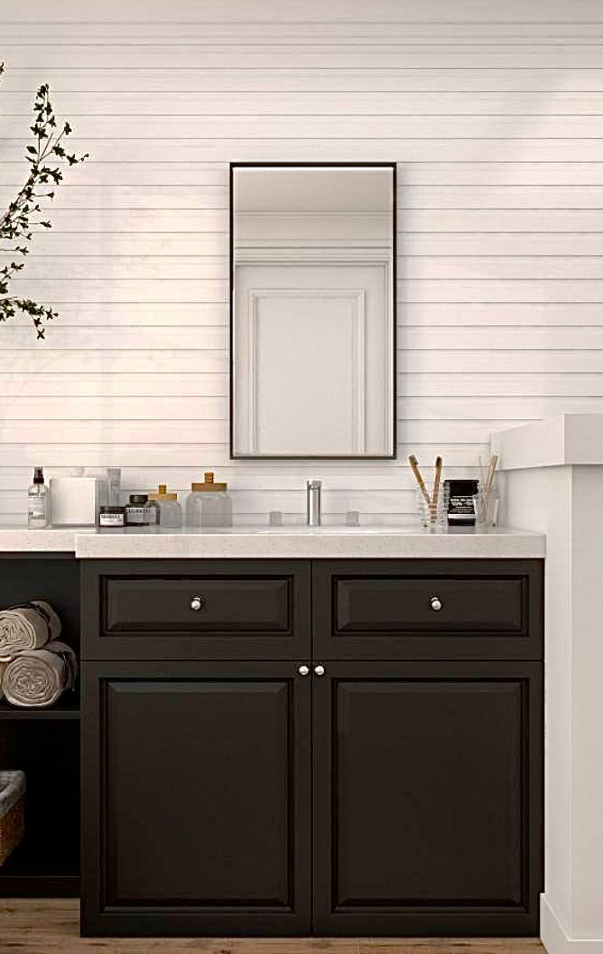 Litton Lane 32 in. x 18 in. Rectangle Framed Black Wall Mirror with Thin Minimalistic Frame