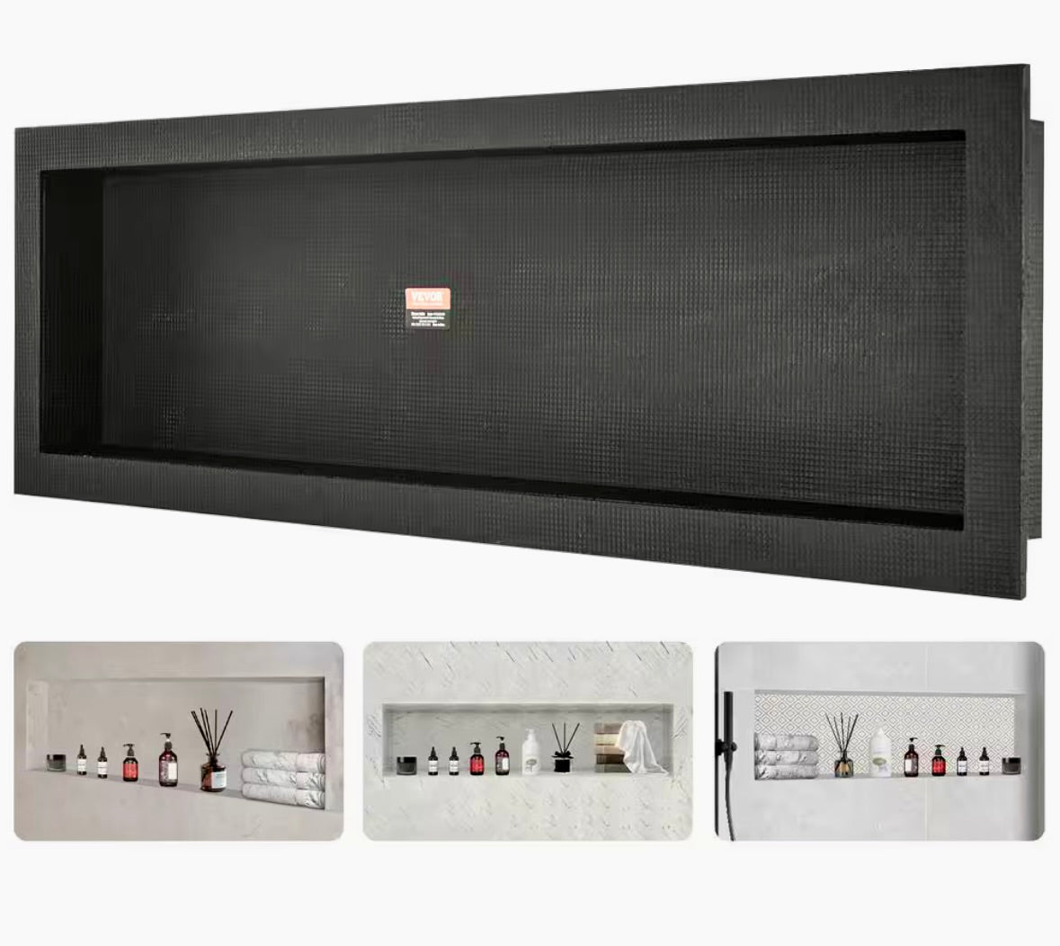 1 x 50 in. W x 16 in. H x 3.5 in. D Shower Niche Ready for Tile Single Shelf Organizer in Black