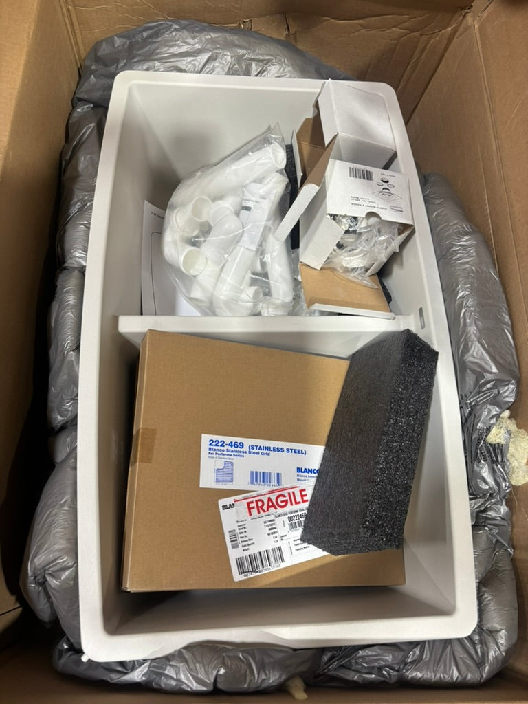 Performa 33 in. Undermount Double Bowl White Granite Composite Kitchen Sink Kit with Accessories