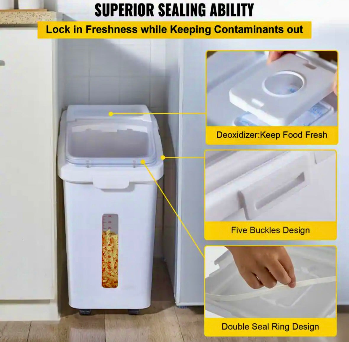 Ingredient Storage Bin 11.4 Gal. Capacity Commercial Shelf-storage Ingredient Bin 280 Cup Flour Bins with Wheels, White