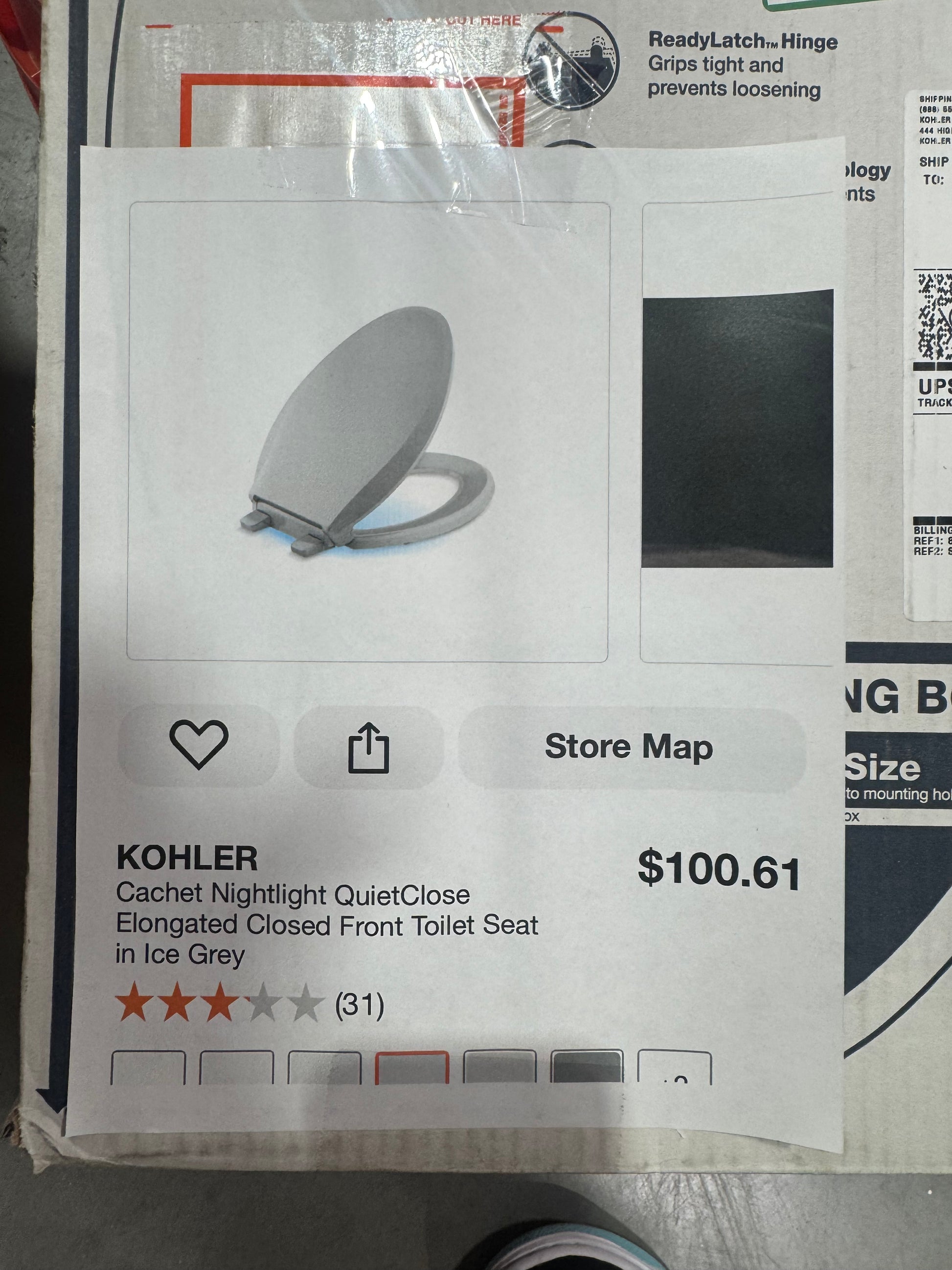 KOHLER Cachet Nightlight QuietClose Elongated Closed Front Toilet Seat in Ice Grey