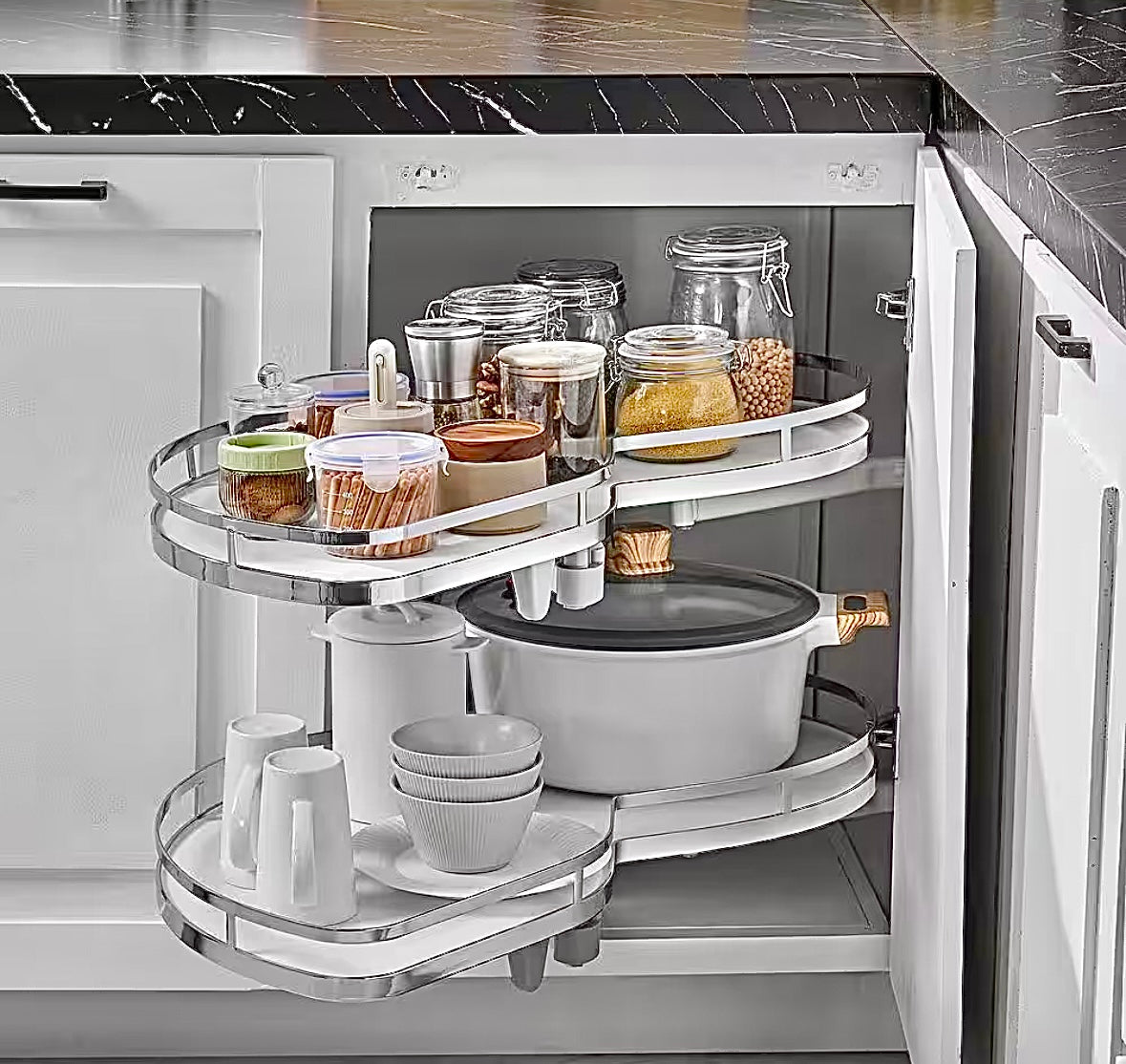 Swing Left Blind Corner Cabinet Pull Out for 36 in. Cabinet 2 Tier Swing Tray Soft Close Cloud Blind Kitchen Cabinet
