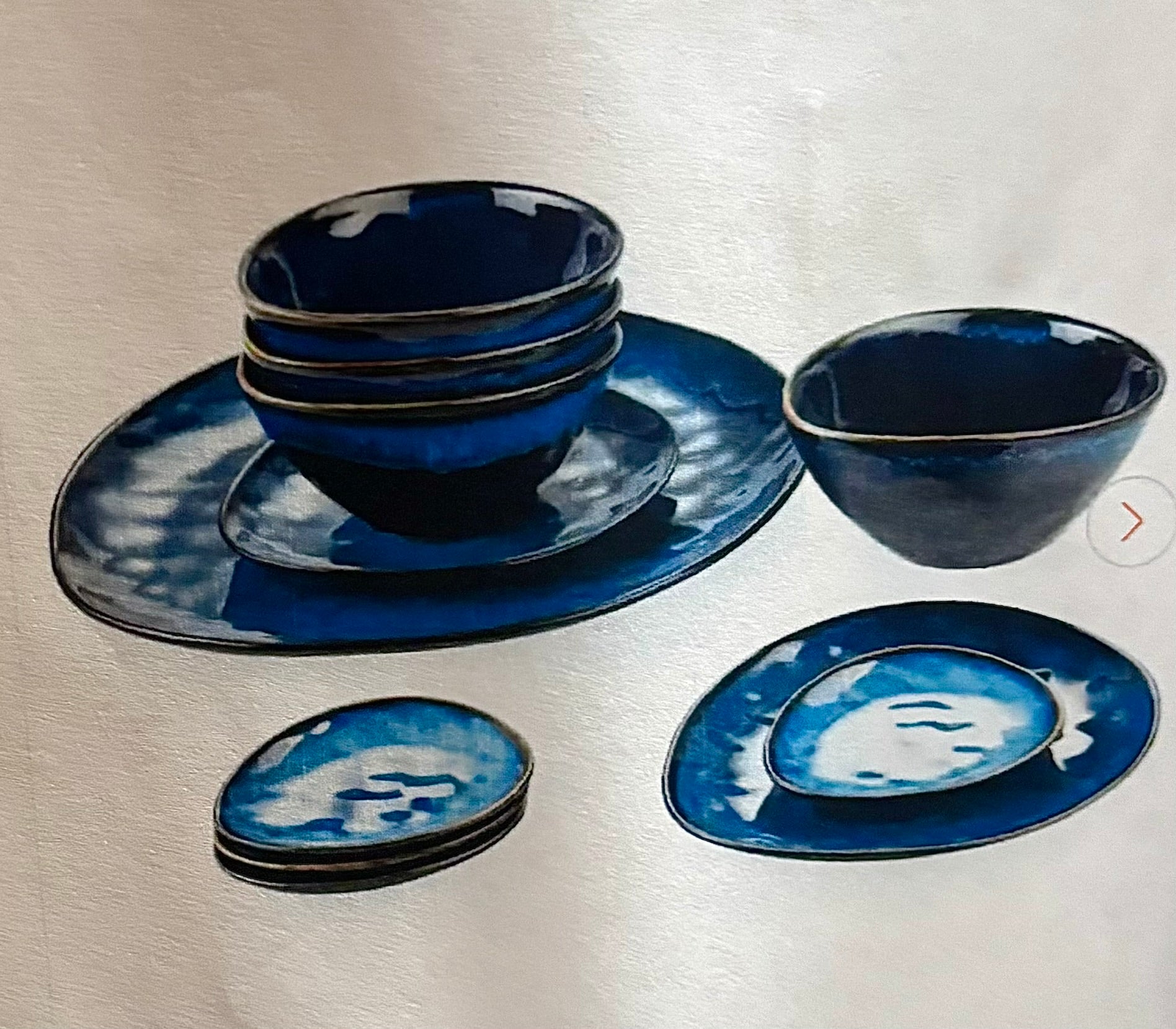 Starry 11-Pieces Blue Dinnerware Set Porcelain with 1-Dinner Plate, 2-Dessert Plate, 4-560ml Bowl, 4-Dish (Set for 4)