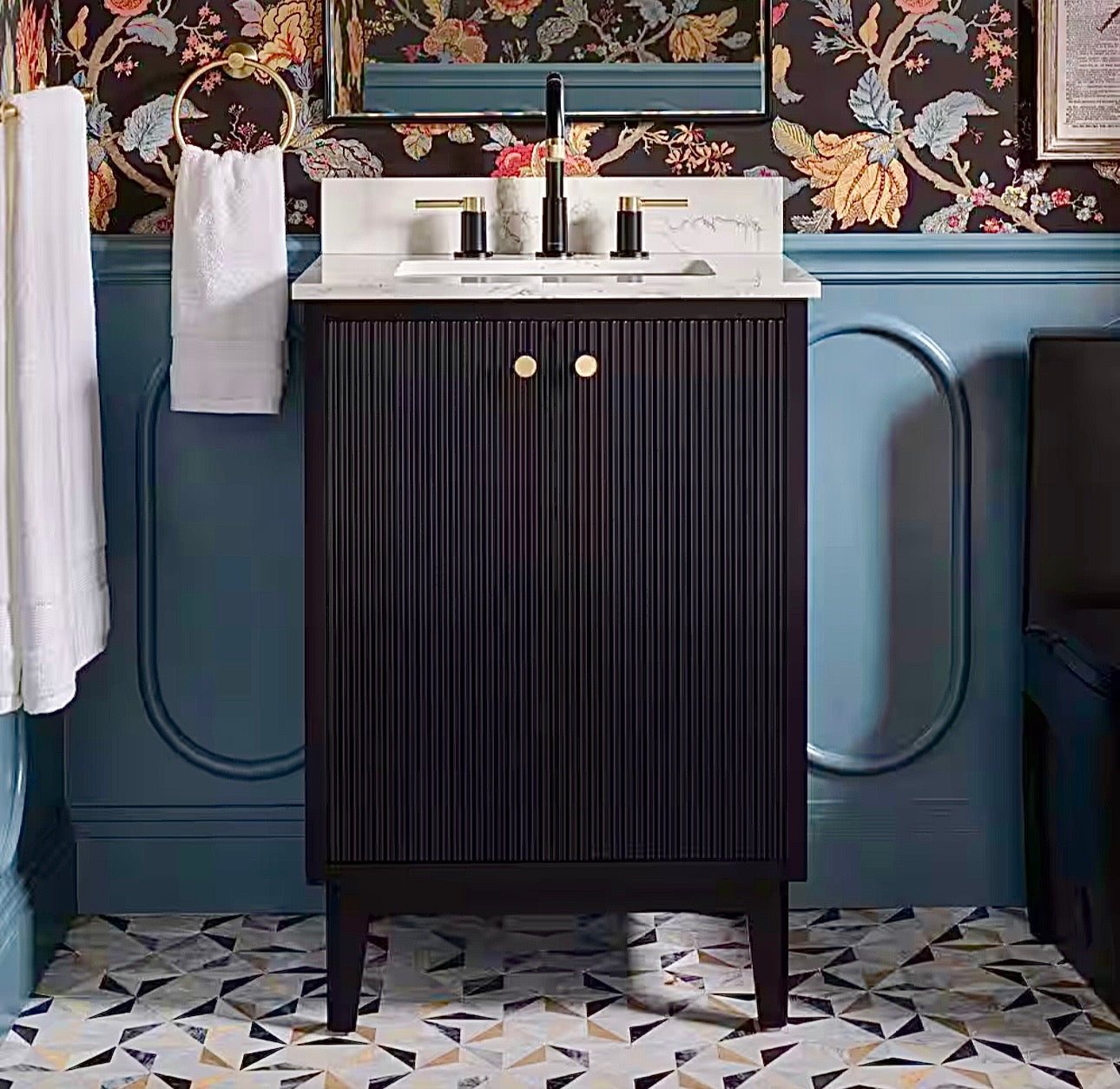Sylvie 24 in. Single Sink Fluted Black Bath Vanity with Carrara Venato Engineered Stone Top